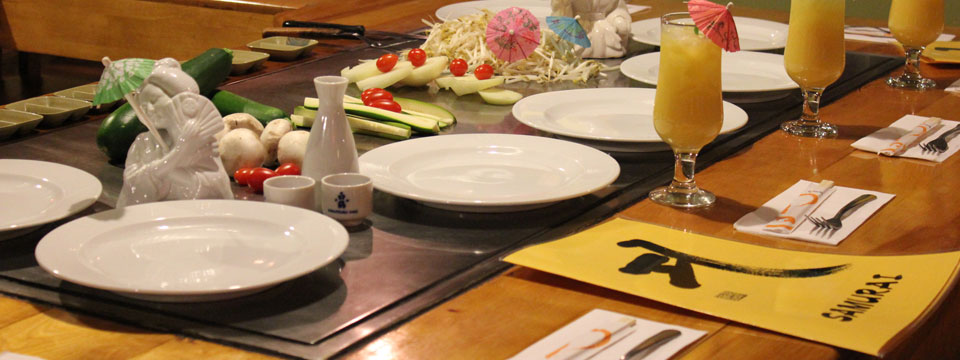 Que ce soit en groupe autour d'une table teppanyaki, pour un repas plus intime dans un de nos salons tatami, pour fêter une occasion spéciale ou simplement pour un tête-à-tête avec votre amoureux, vous bénéficierez des atouts qui ont fait la renommée du restaurant Samurai, soit la qualité, l'ambiance, l'esprit, et bien sûr, la touche du chef!